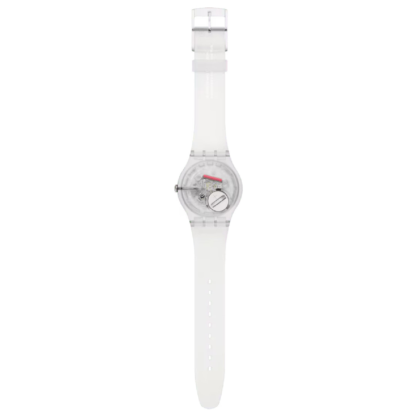 На матовом светло-бежевом циферблате этих часов красуются рисунки Кита Харинга, выполненные в сером цвете, его автограф и знак авторских прав, а также логотип Swatch в интерпретации художника. Отсчет часов, минут и секунд под стеклом из биоматериала ведут серебристые стрелки. Модель имеет прозрачный корпус из биоматериала, закрепленный на матово-прозрачном ремешке с тренчиком и пряжкой.