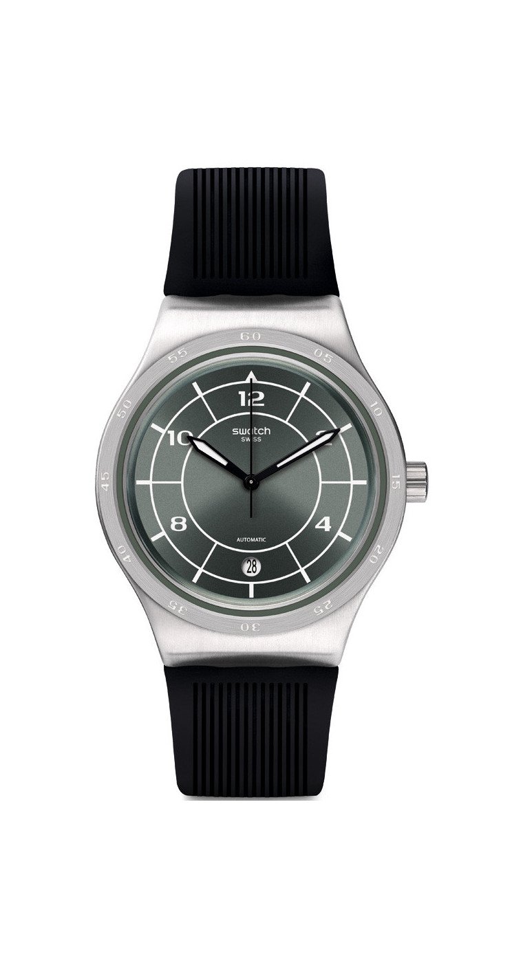 Зеленый циферблат с радиальной полировкой никого не оставит равнодушным; модель SISTEM RUB (YIS419) оснащена черным каучуковым ремешком с ребристой поверхностью.