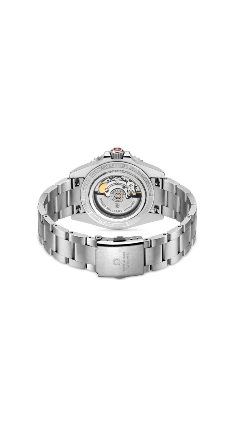 Автоматический швейцарский механизм Soprod P024, который основан на знаменитом механизме ETA 2824. Эти профессиональные часы для дайвинга швейцарского производства. Раскладная застежка с фиксатором.