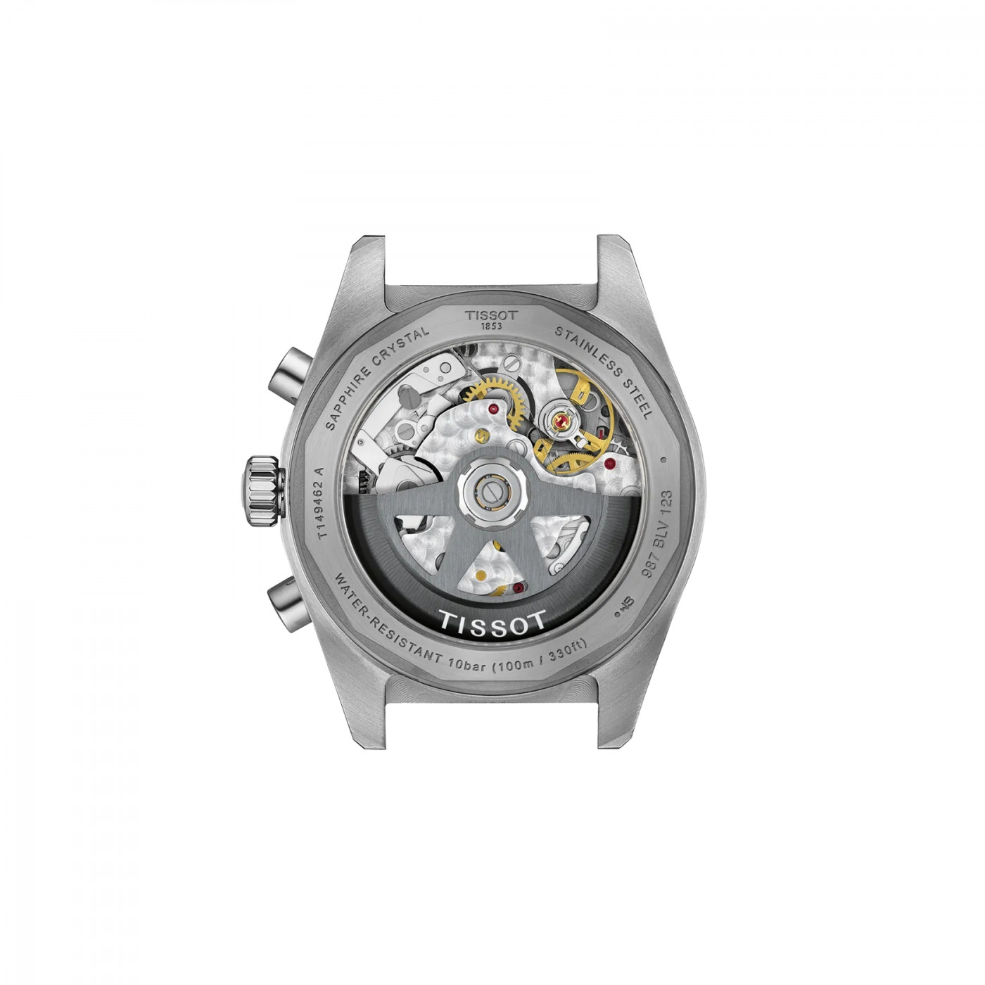 Автоматический хронограф Tissot Swiss Made. Запас хода до 68 часов. Функции: 12-часовой, 30-минутный и 60-секундный счетчики, центральная 60-секундная стрелка хронографа, спираль Nivachron.