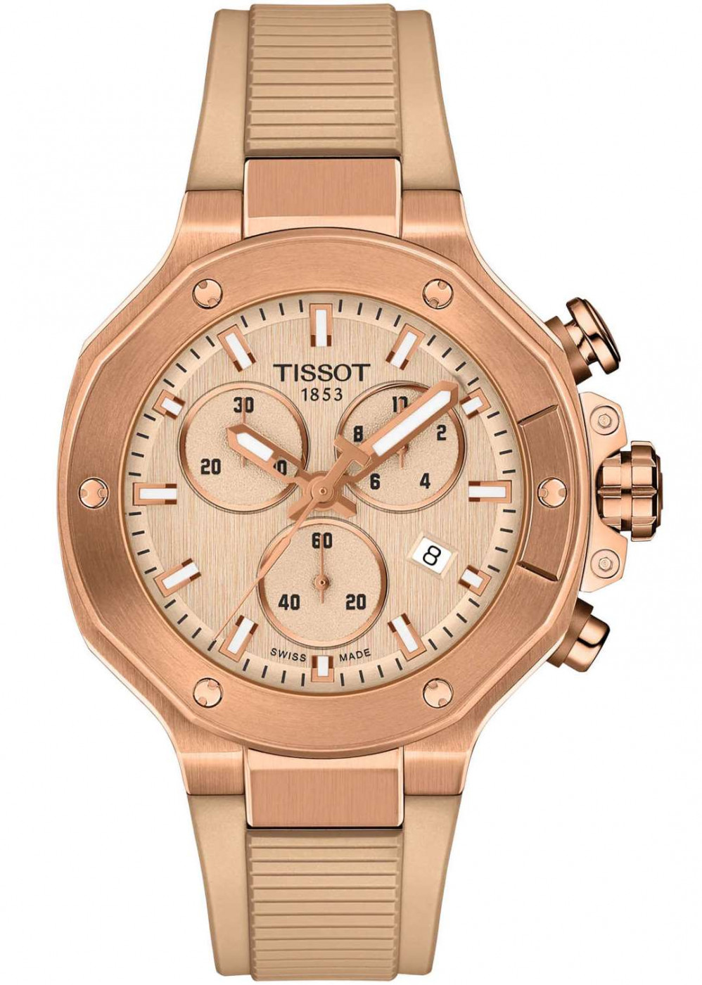 Эти часы, оснащенные кварцевым хронографом, откроют вам путь к свободе. Уникальный дизайн и диаметр 38 мм придают коллекции новое измерение. Эти часы, ориентированные на точное время, отражают нашу страсть к автоспорту. Компания Tissot, вдохновленная сотрудничеством с motorcycle racing, создала часы, отражающие динамизм мотоциклов и спортивные эмоции... Коллекция T-Race погружает владельца в механическую среду и пробуждает его дух. Безель напоминает тормозной диск, кнопки выполнены в виде руля, а ребра охлаждения двигателя воспроизведены на боковой стороне корпуса. Часы водонепроницаемы до 10 бар (100 м) и оснащены кварцевым механизмом хронографа.