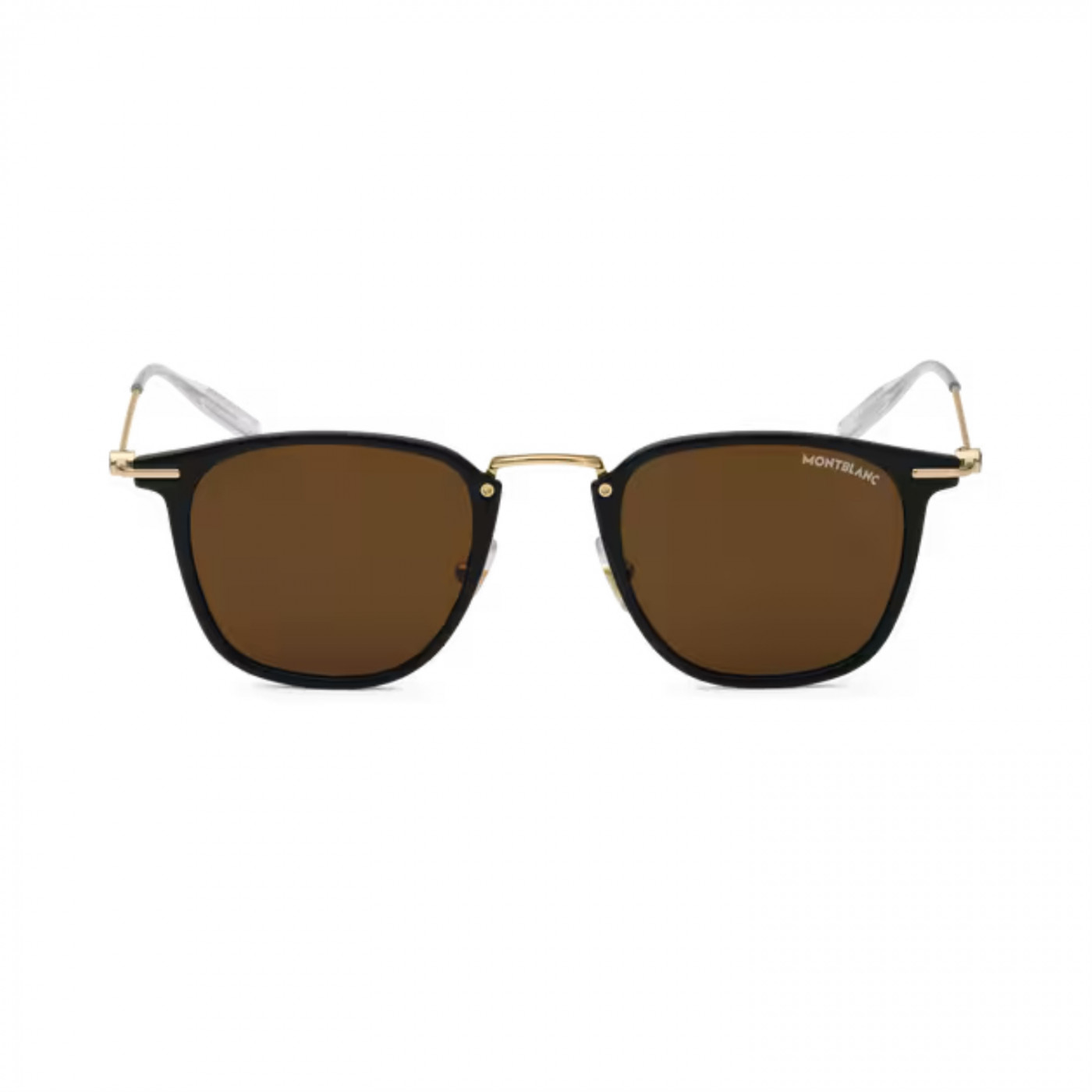 Эти легкие солнцезащитные очки черного цвета с оправой золотистого цвета, изготовленной методом литья под давлением, отличаются округлой формой. Линзы коричневого цвета придают им современный вид. Логотип Montblanc нанесен лазером на левую линзу, а противоскользящий рисунок нанесен лазером на внутреннюю сторону дужек для повышения комфорта.