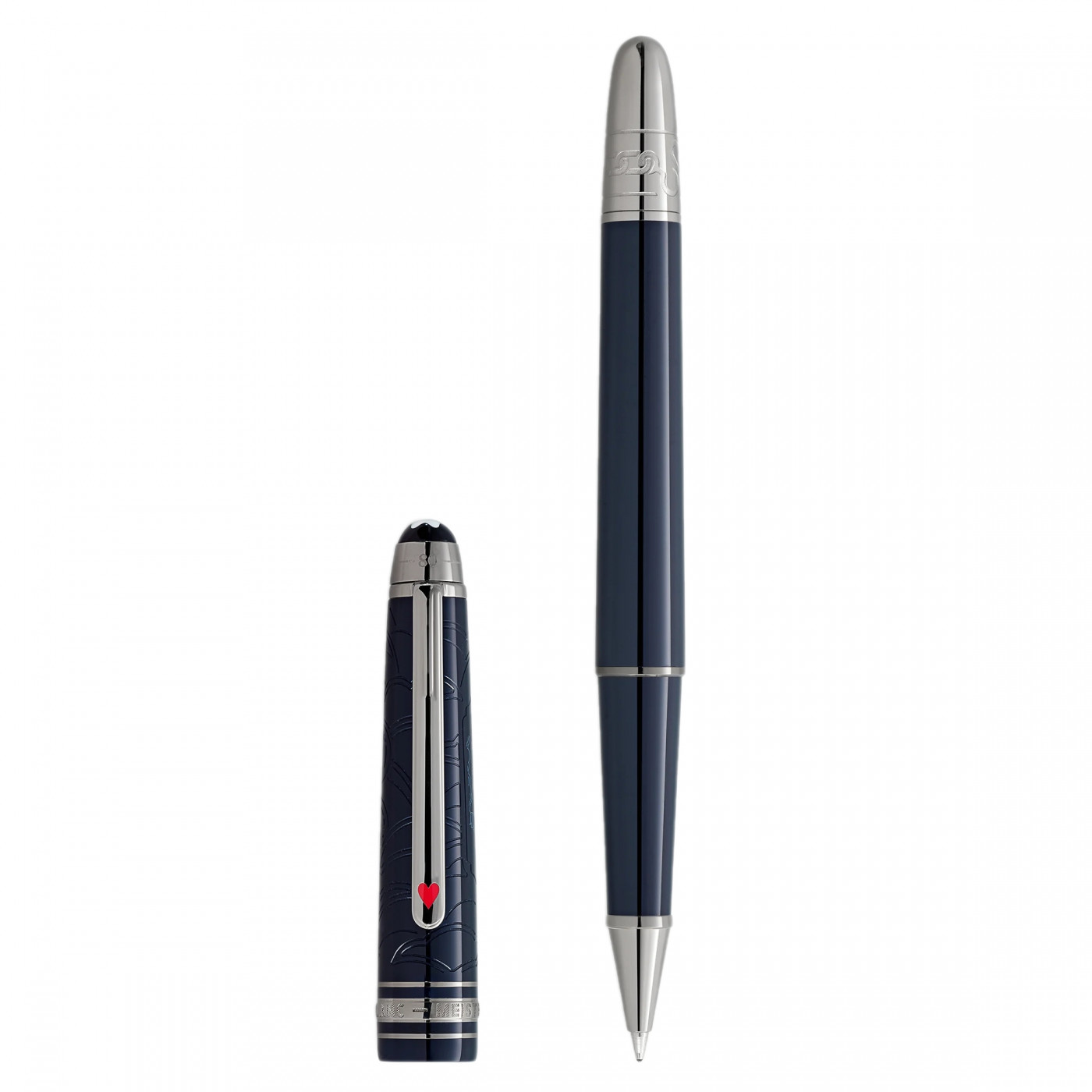 Коллекция Meisterstück «Вокруг света за 80 дней» вдохновлена знаменитым приключенческим романом Жюля Верна. Rollerball, украшенный драгоценной темно-синей смолой, рассказывает об эпическом путешествии мистера Фогга и Паспарту. Отправляясь в последний этап из Иокогамы обратно в Лондон через Соединенные Штаты, дуэт пересекает огромный американский континент на поезде. Погрузитесь в замысловатые детали – поезд, элегантно вырезанным лазером на крышке, узор из предохранительной цепи на конусе, отражающий поворотный момент, когда Паспарту отсоединяет поезд от локомотива, чтобы спасти команду, на которую напали сиу. Дизайн крышки изображает клапаны давления и клубы дыма локомотива, а зажим украшен красной лакированной карточной мастью в форме сердца, символизирующей союз Филеаса Фогга и принцессы Ауды.