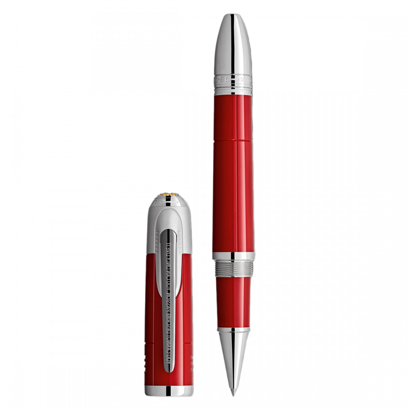 Клип: Клип с рутениевым покрытием и гравировкой. Корпус: Драгоценная смола красного цвета, платиновое покрытие. Колпачок: Драгоценная смола красного цвета. Цвет: Красный.