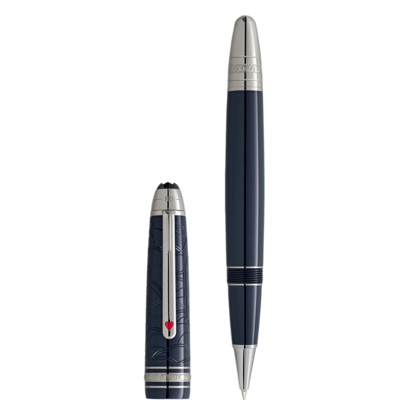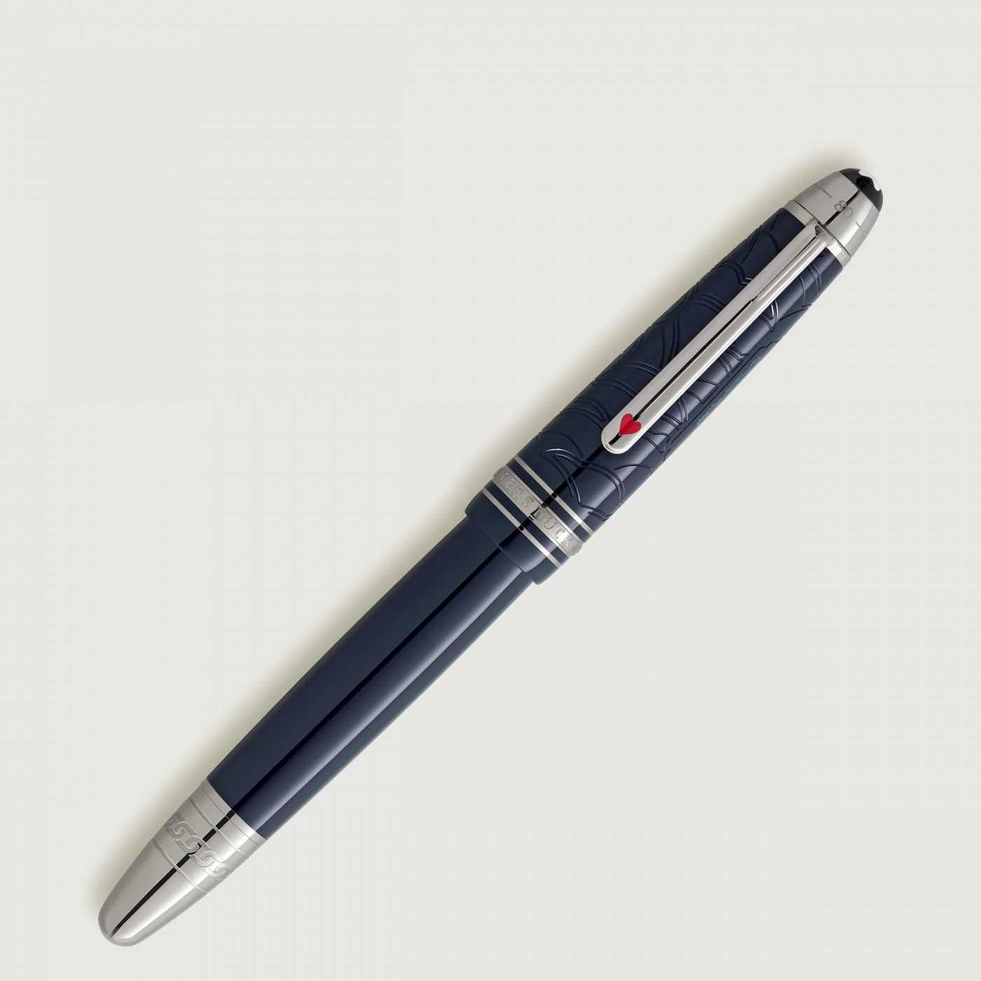 Коллекция Meisterstück «Вокруг света за 80 дней» вдохновлена знаменитым приключенческим романом Жюля Верна. LeGrand Rollerball, украшенный драгоценной темно-синей смолой, рассказывает об эпическом путешествии мистера Фогга и Паспарту. Отправляясь в последний этап из Иокогамы обратно в Лондон через Соединенные Штаты, дуэт пересекает огромный американский континент на поезде. Погрузитесь в замысловатые детали – поезд, элегантно вырезанным лазером на крышке, узор из предохранительной цепи на конусе, отражающий поворотный момент, когда Паспарту отсоединяет поезд от локомотива, чтобы спасти команду, на которую напали сиу. Дизайн крышки изображает клапаны давления и клубы дыма локомотива, а зажим украшен красной лакированной карточной мастью в форме сердца, символизирующей союз Филеаса Фогга и принцессы Ауды. На верхней части крышки вытиснена хронология путешествия: 36 дней от Иокогамы до Лондона и в общей сложности 80 дней кругосветного путешествия.