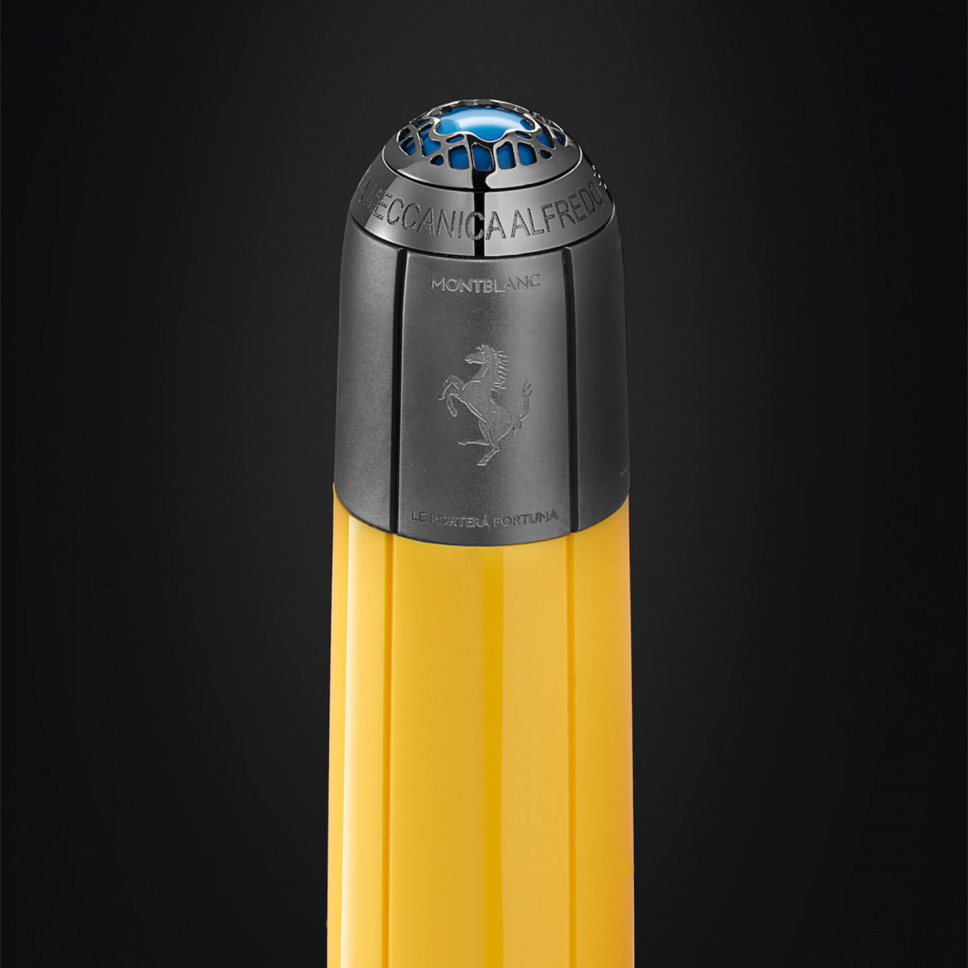 Имя Ferrari символизирует эстетичный дизайн, мощные двигатели, практически бесконечные технические инновации и имя одного из самых влиятельных людей в истории автомобилестроения. Montblanc посвятил Great Characters Enzo Ferrari Special Edition этому человеку и его страсти к гонкам. Черпая вдохновение как в гербе родного города Энцо Феррари Модены, так и в символичном цвете логотипа Scuderia, эта коллекция чтит вторую душу Ferrari — жёлтый цвет. Даты рождения Энцо Феррари и его первой гоночной победы выгравированы на конусе, а его подпись и название мастерской его отца, «Officina Meccanica Alfredo Ferrari», как отсылка к месту рождения Энцо Феррари, выгравированы на верхней части колпачка. Его венчает эмблема Montblanc из драгоценной смолы синего цвета – как ещё одна дань уважения гербу Модены – и окружённая замысловатыми металлическими деталями, напоминающими решётку радиатора старинного автомобиля.