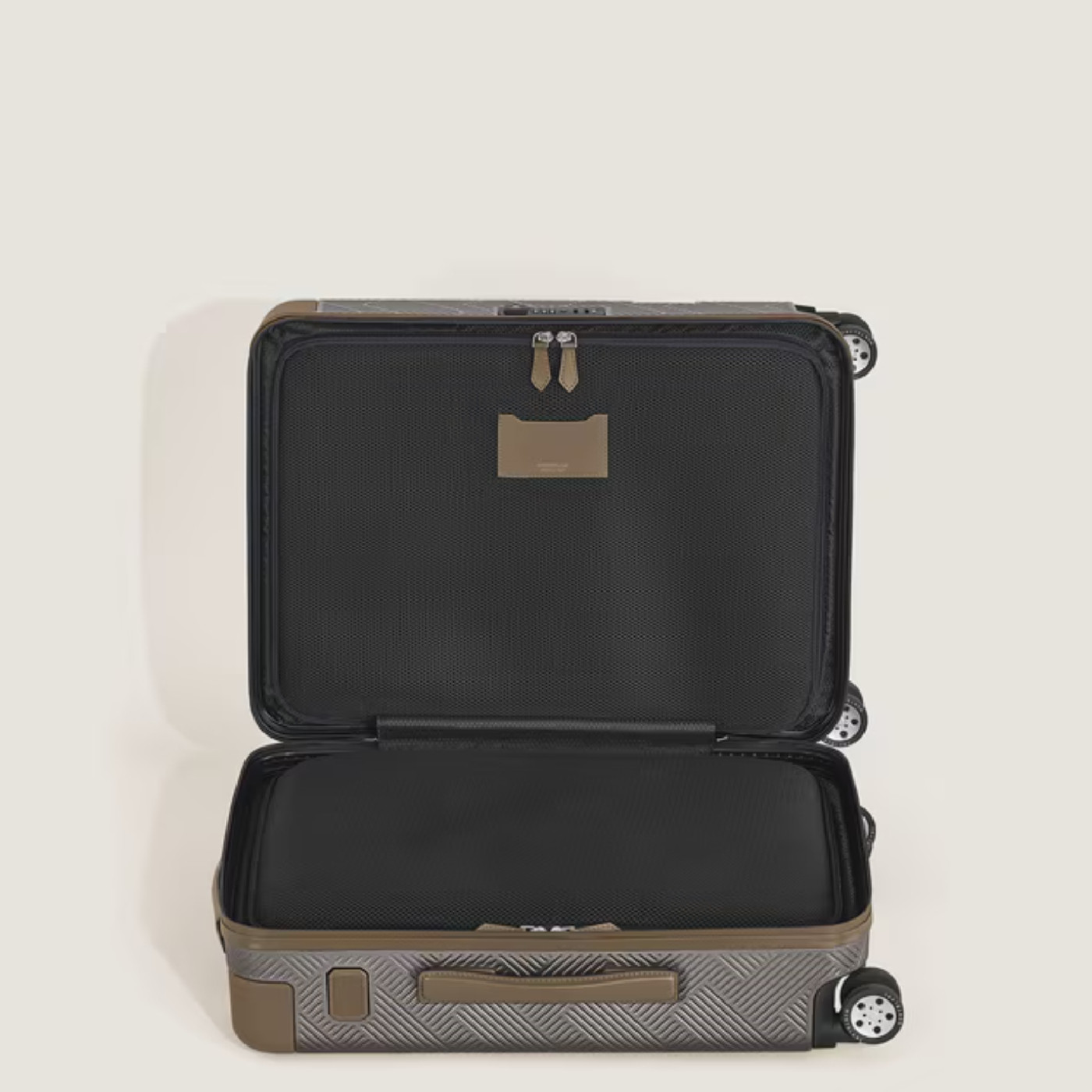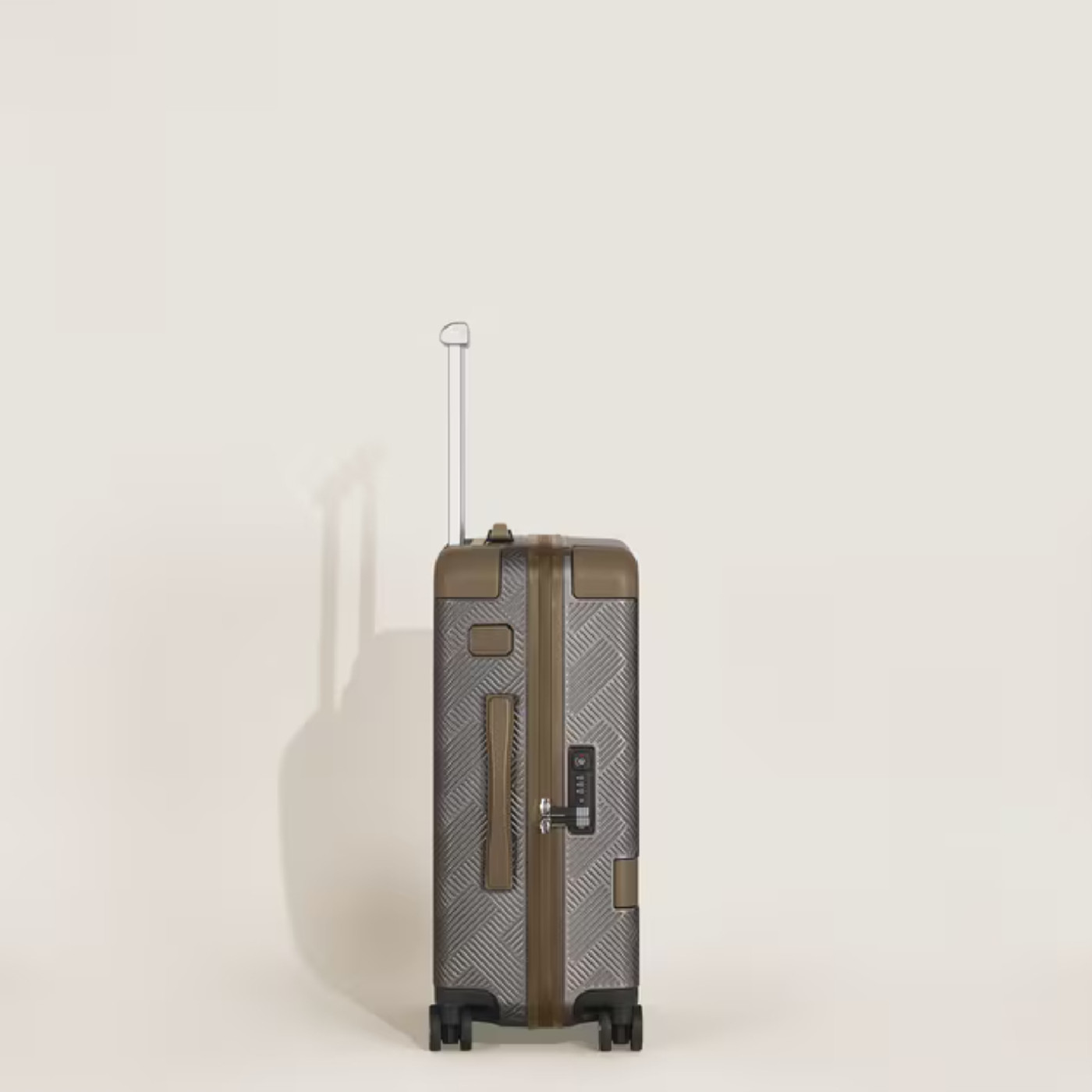 Материал: поликарбонат, кожа теленка с тиснением. Цвет: серебристый/коричневый. Размер: 380 х 230 х 550 мм.