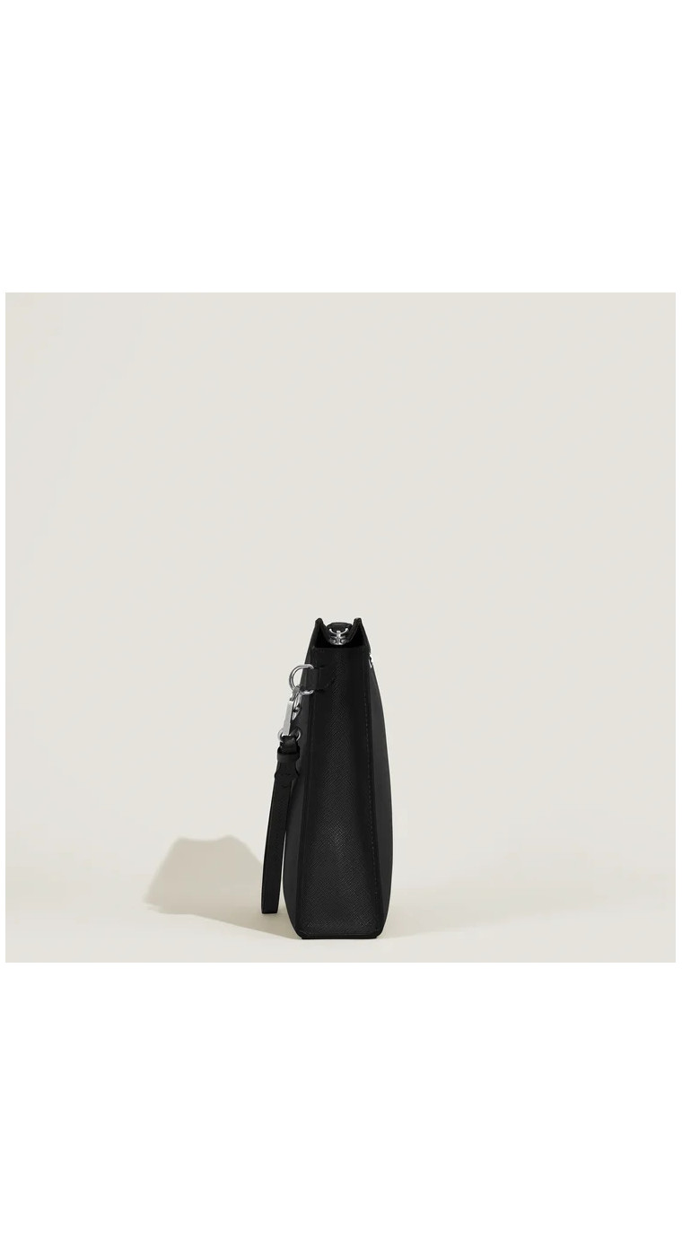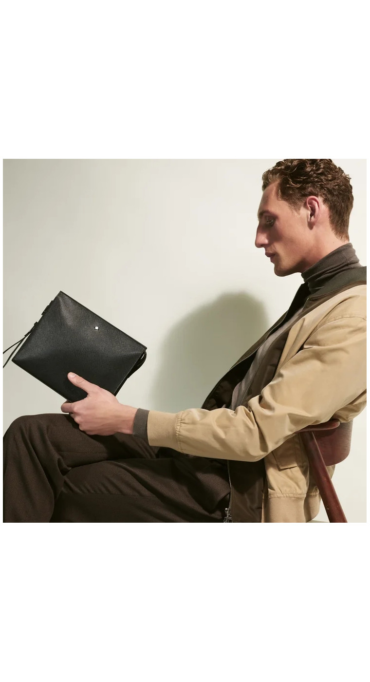 Эта изысканная сумка-клатч Sartorial идеально подойдет для ношения предметов первой необходимости. В ее главном отделении, изготовленном из кожи с тиснением Saffiano элегантного черного цвета, имеется дополнительный открытый карман для большего удобства. Вы можете носить ее в руке, под мышкой или на запястье с помощью съемной ручки.
