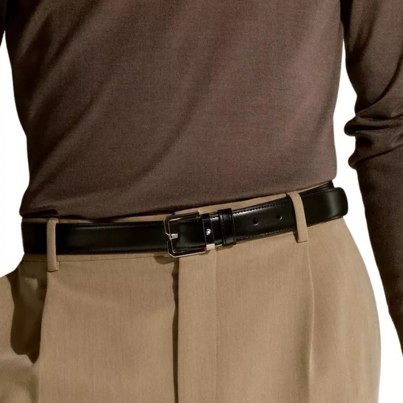 Этот кожаный ремень Montblanc с квадратной пряжкой является реверсивным, поэтому вы можете выбрать черный или коричневый цвета, оба из однотонной воловьей кожи с гладкой отделкой. Блестящая пряжка из палладия с эмблемой в виде снежной шапки в центре для создания утонченного фирменного стиля. Этот реверсивный однотонный кожаный ремень Montblanc - неподвластная времени вещь, которая отлично подойдет для офиса, повседневной носки или особых случаев.