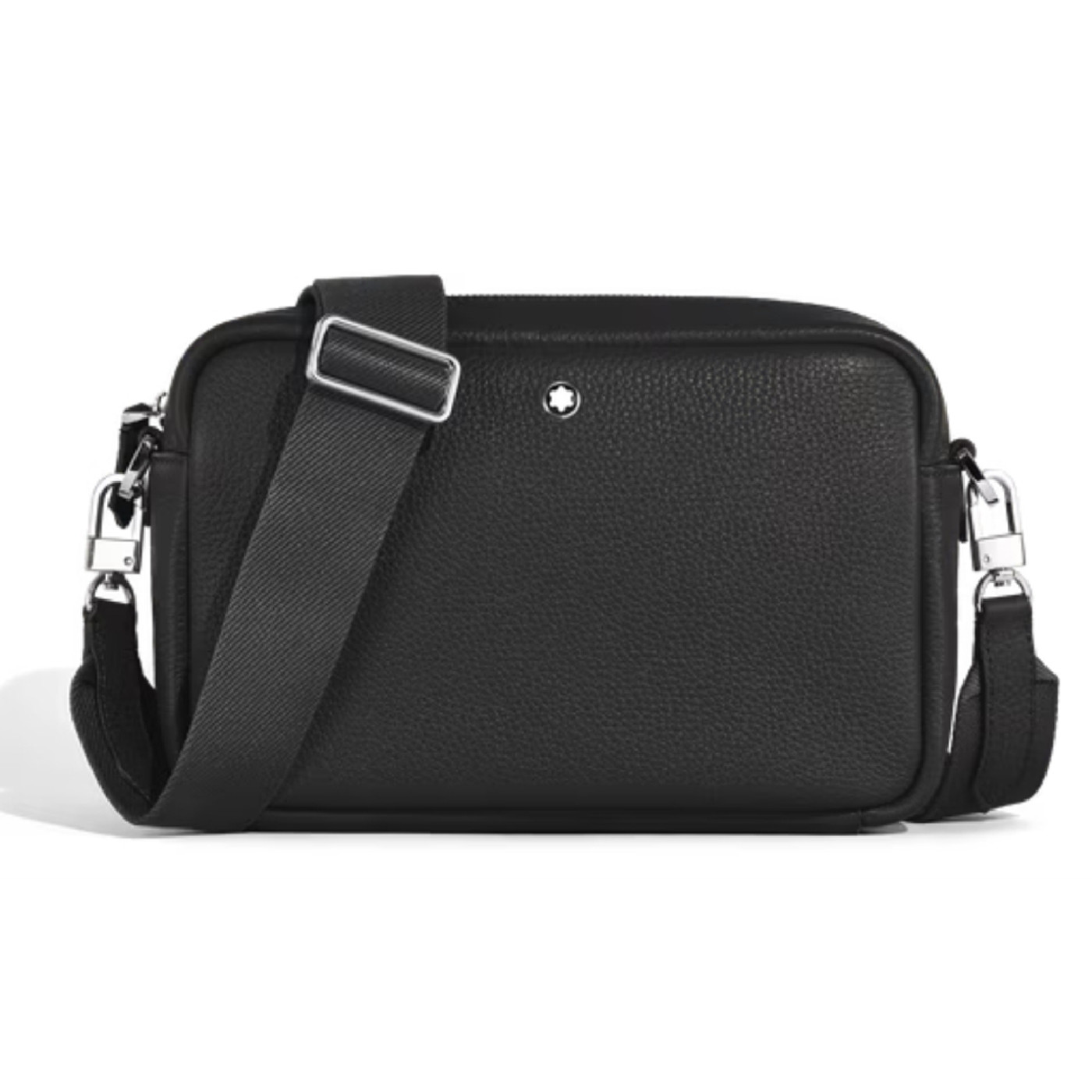 Эта небольшая сумка через плечо, изготовленная из мягкой телячьей кожи черного цвета с зернистой текстурой, имеет прямоугольный силуэт, дополненный кожаными деталями Meisterstück, включая эффектный язычок молнии в форме пера и изысканную седельную строчку, имитирующую след от ручки. Практичная конструкция включает основное отделение с открытым карманом и двумя петлями для пишущих принадлежностей, а съемный регулируемый плечевой ремень обеспечивает универсальные варианты ношения и стильный внешний вид.